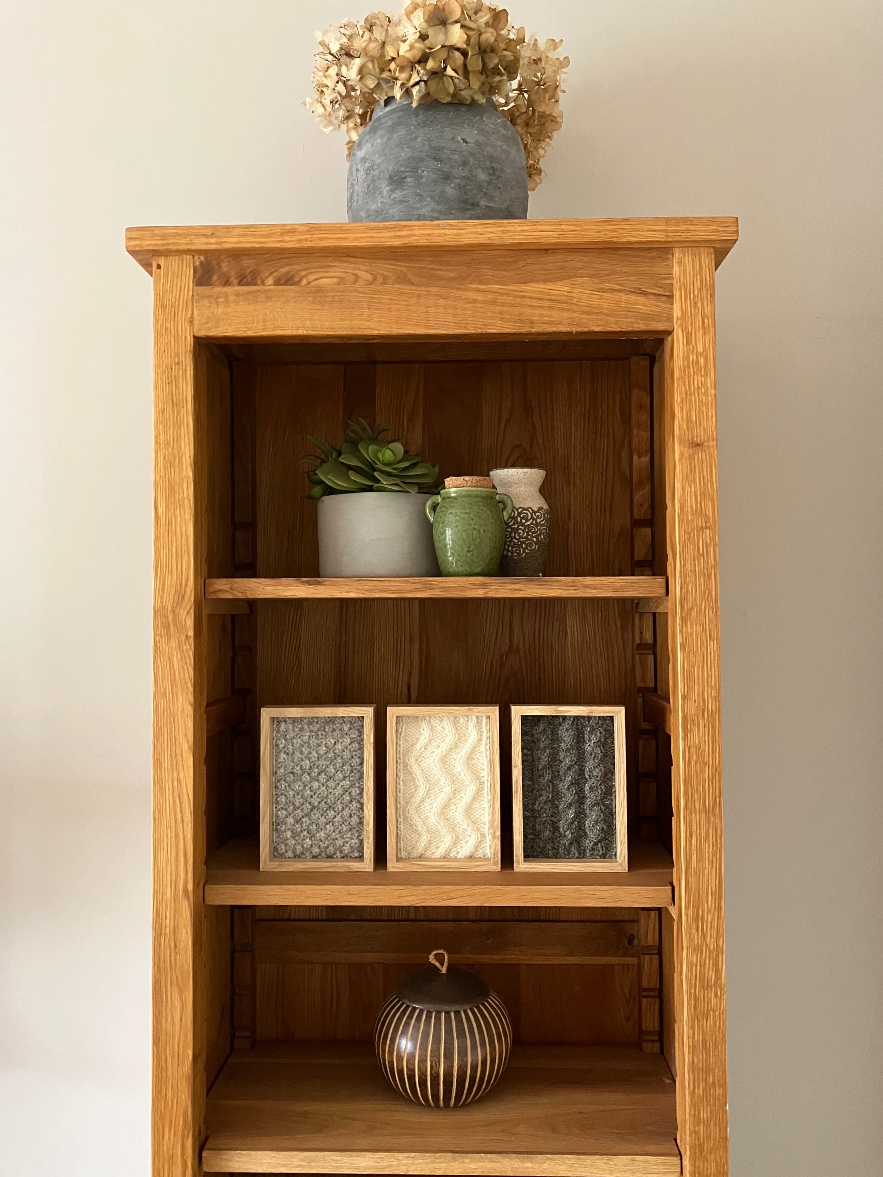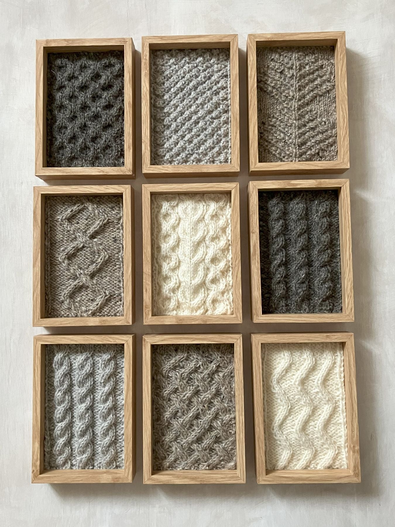 She began to create one-off panels to explore the main motifs used in Aran knitting, showcasing each stitch design as a work of art in itself – to be displayed as a standalone piece or in a collection. In future, she plans to expand on this by designing more artworks and accessories in Aran knit.